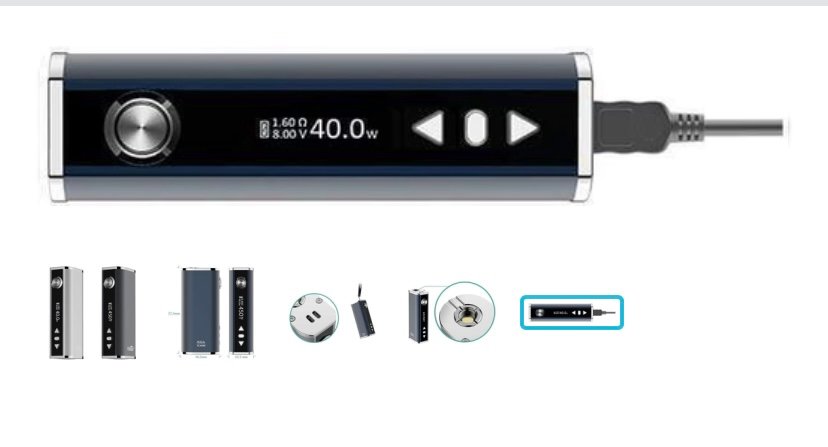 Istick TC40W battery is a new innovation in the Istick series designed by Eleaf and embraces a new temperature control setting that will give you unique vaping experience without any dry hit. Regardless of the little size, it can go up to 40W with an enormous 2600mAh battery limit. Besides, all hardened steel strings and flexible spring connector are strong wear resistance. With temperature control function, less power and e-liquid consumption will also be a plus. With its standard 510 connection, this device can be used for most of the tanks.